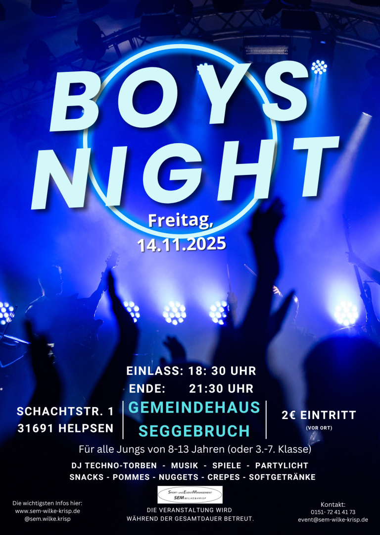 Eine Party nur für Jungs. Neue Erfahrungen, Spiel, Spaß und Freunde. Verbringt den Herbstferienstart bei der vierten Boys Night in Schaumburg.